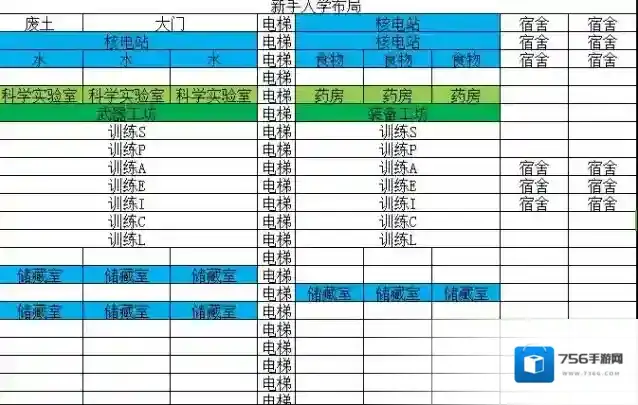 储藏为5w瓶盖到60人口就可以迅速造核电站,造核电站需要把那个二级的电站拆掉,并且迅速升级到三级核电站,等到有钱就把所有电站拆掉建核电站,小人最好在一层工作,不在也没关系。60人口到100人口大致为如此结构,我说明下,我不喜欢前期探险,我需要把我人物属性平均为8的时候再去探险,那个时候一天派出25个人,等到回来的时候就是40W,属性高收集资源还有额外的钱拿,所以那时候就随便改造了,还是得说明下,新手不推荐造两排电梯,因为一排完全够用。60-100人口布局如下: