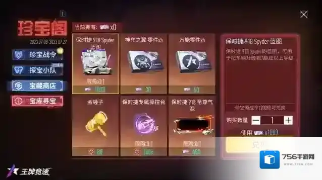 活动中,车手们还有机会获得寻宝礼券,可用于直接兑换保时捷*** Spyder蓝图、神车之翼零件、保时捷专属操控台、保时捷***至尊气泡等专属礼物。