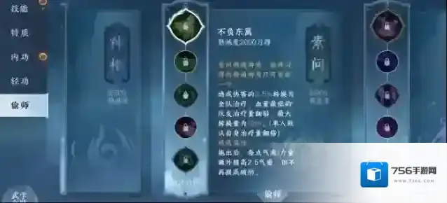 •能偷到的武学分为精通特质、可选特质(这两个相当于被动技能)、主动技能3种。其中,精通特质只能装备1个,可选特质则没有限制(加上自己流派的一共5个)。