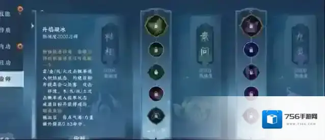 丹焰凝冰:精通特质,使用不用属性的技能造成效果不同。雷/金/风/火攻击概率灼烧目标并提高会心伤害、攻击、移速;木/水/冰/土攻击概率减速目标并获得减伤。装备该特质后,气海/力量还会带来额外命中加成。