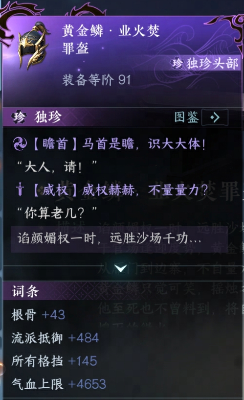 9剧情任务江湖之中,最不缺的就是故事。剧情发展之中,竟也有装备的掉落。经历完最新正传剧情连云寨正传·残云翻覆聚散匆后,前往大世界探寻可得到独珍装备黄金麟·业火焚罪盔。