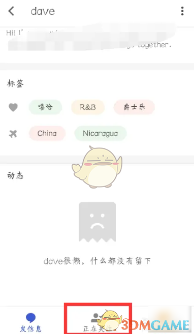 6、显示正在关注就成功关注对方了。