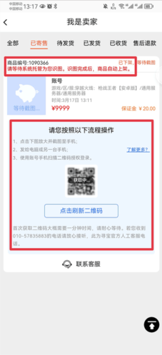7、最后在已寄售界面内按照提示操作,并等待系统托管客服为您识图,识图完成后商品会自动上架。
