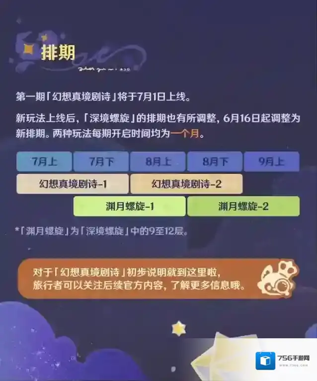 旅行者好呀,4.7版本将上线全新常驻战斗玩法「幻想真境剧诗」,本玩法将提供丰富的原石奖励和不仅限在玩法内的战斗增益效果。一起来了解基础规则、排期和可获得的奖励吧!