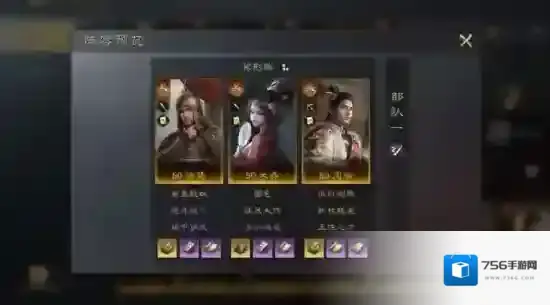 在前期,玩家提升等级的同时,需要逐渐组建三只部队,分别为任务队、主力一队、主力二队,任务队需任意1前排1奶1输出即可,该队伍顾名思义就是游戏前期过任务的。在任务队体力耗完后,由主力一队接手打地,该队伍武将阵容强烈推荐最容易获得的徐盛、孙策、大乔(孙大圣)。
