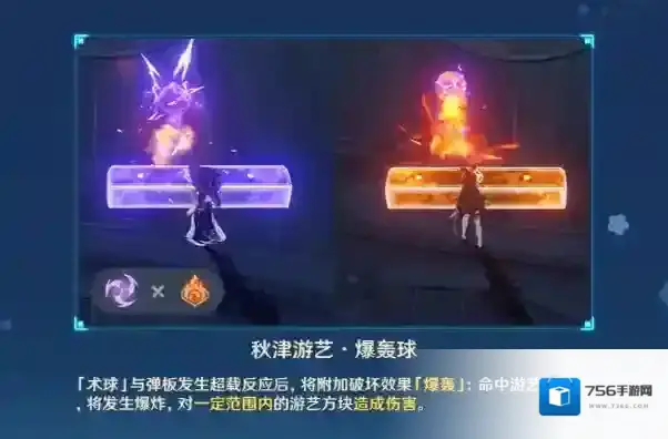 4、推荐角色:火元素/雷元素角色。术球和弹板发生超载反应后,会附加破坏效果[爆轰]。