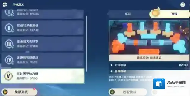 1、选择[三彩团子加方糖],匹配或单人挑战。