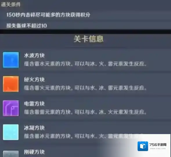 6、通关要求:150秒内击碎尽可能多的方块获得积分。损失备球不超过10个。