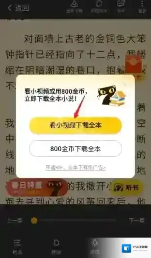 4、再然后点击看小视频下载全本,或者领取金币后点击金币下载全本也可。