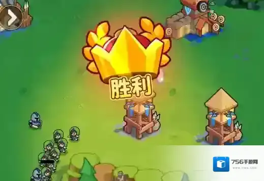 首回合必建防御箭塔,优先在主城周围形成火力网。随后升级主城至 2 级,解锁兵营训练士兵,配合箭塔形成交叉火力。