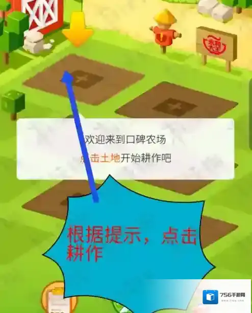 点击领取新手礼包后,根据屏幕上的提示,点击土地开始耕作,选择种子浇水。如图所示