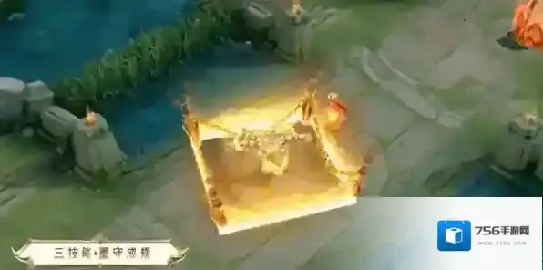 1、三技能用4把降魔杵配合锁链形成了囚笼,释放后周围金光闪烁,视觉效果还是蛮华丽的。