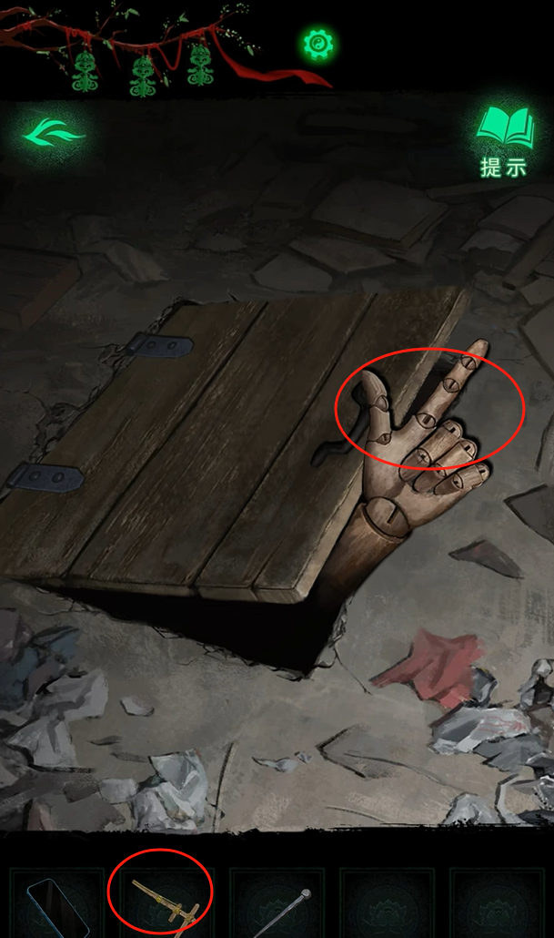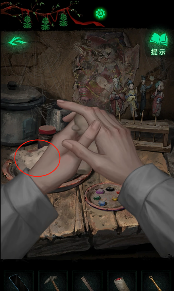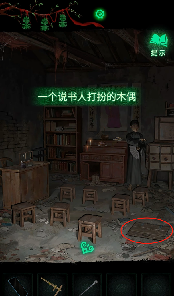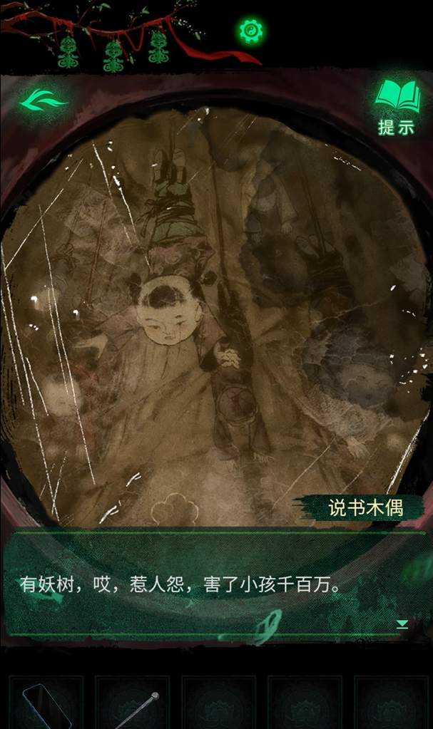 点击说书人前方的木板,发现这是一个地洞,里面探出来一个木偶的手