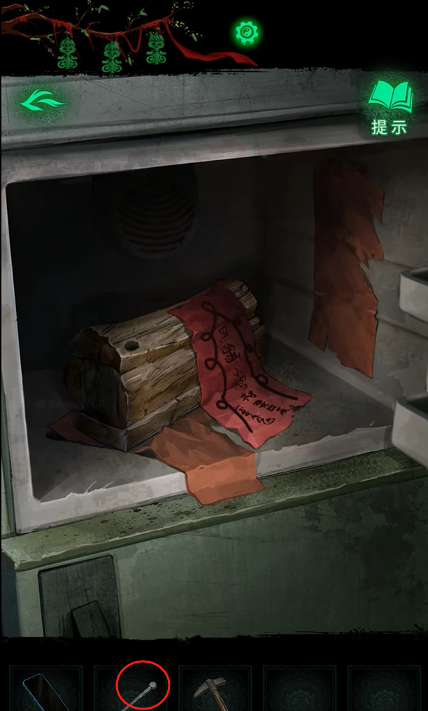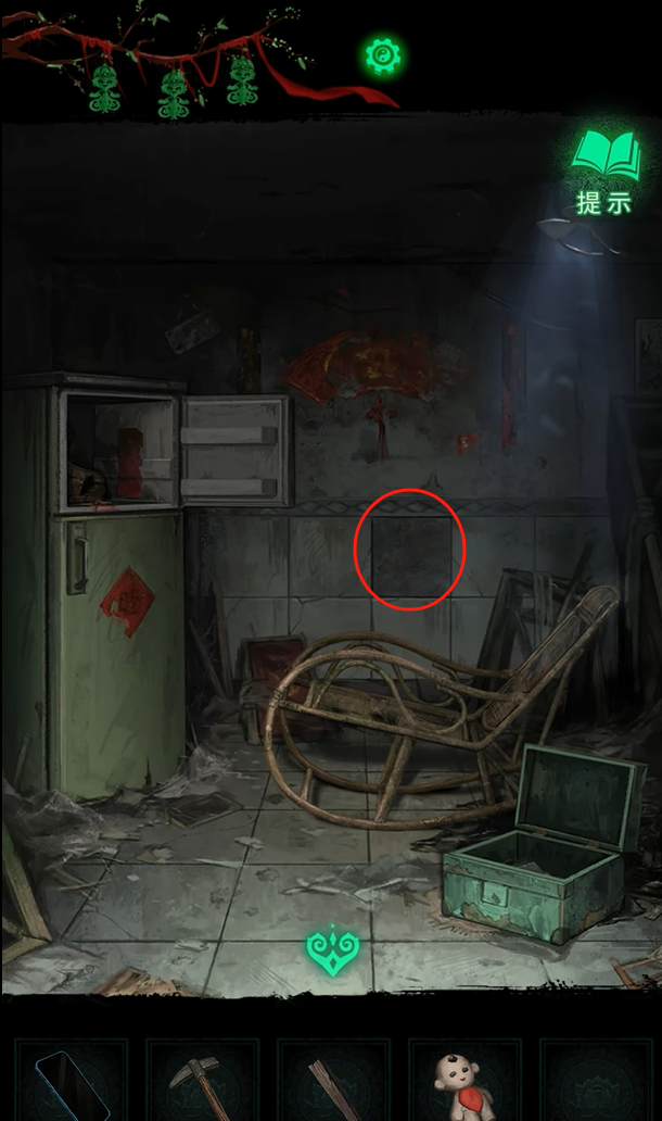 回到二楼的房间点击这块颜色不一样的砖用榔头敲碎