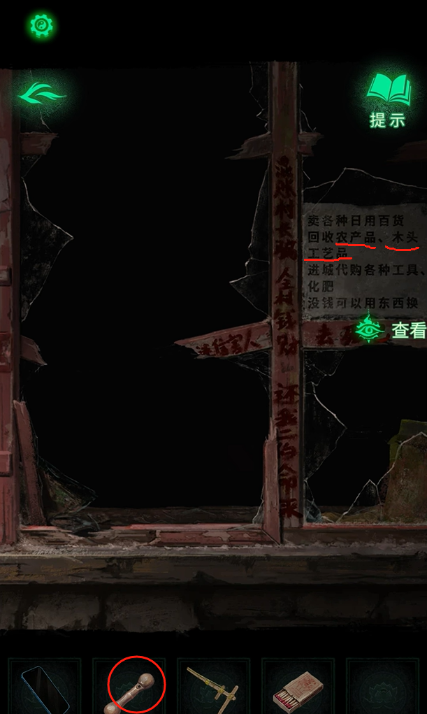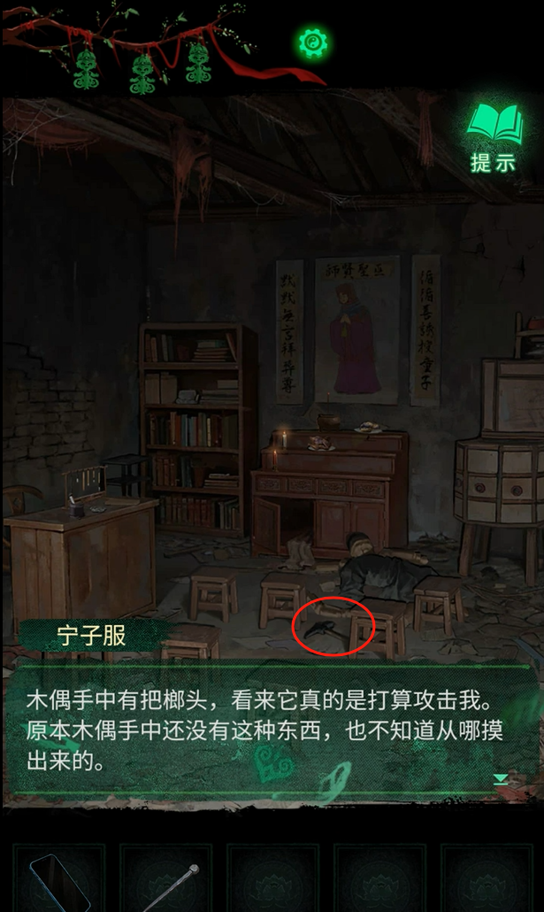 西洋镜里突然闪过说书人要攻击你的画面,转过身来一看说书人已经瘫在地上了,而他手中也多了吧榔头,我们捡起榔头