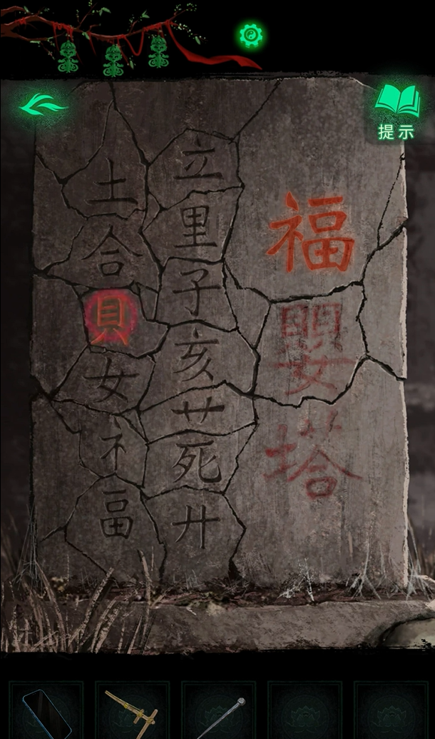 回到村口再次点击右侧的石墩,将石板安放进去,再对应石墩上的字补充完整
