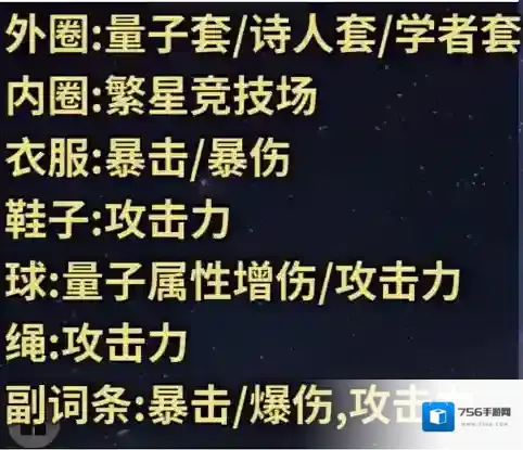 主词条方面,暴击/爆伤衣服、攻击鞋、量子球、攻击绳