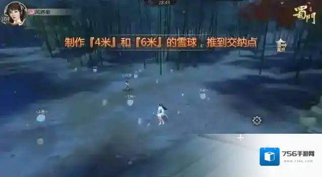 2.点击左侧任务进入雪球滚滚副本,根据提示完成三次滚雪球任务即可达成奇遇。