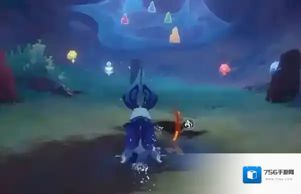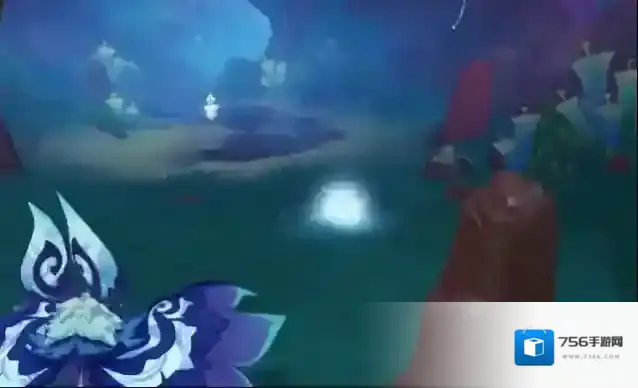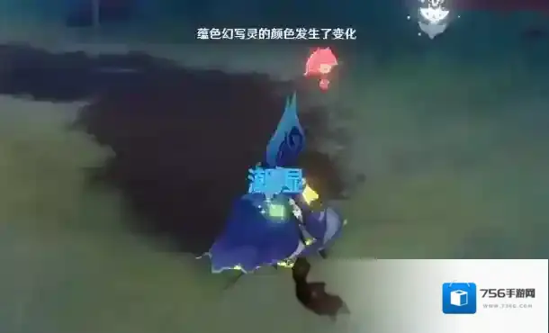 进洞后可以看到前方地面上有光点,保持暝视龙变身状态站上去(要对准),开启元素视野后即可发现隐藏的染料(派蒙说话说明成功了)