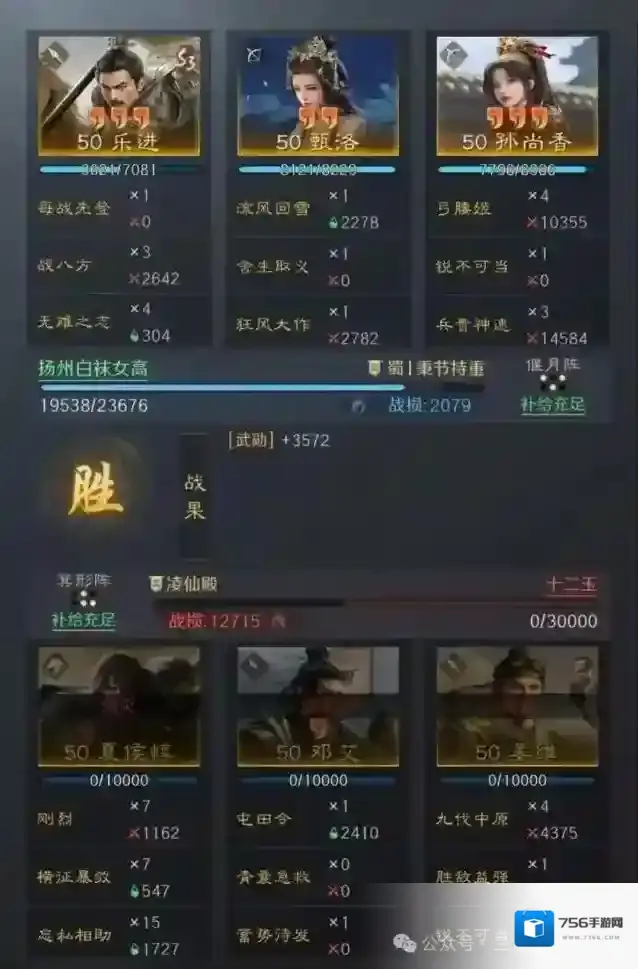 加点细节:乐进全速,甄洛全智,香香全武力,但是要注意孙尚香统率不能是全队最低(适当补统率),否则打不了左田陆。