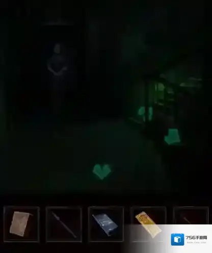 8、我们完成小游戏获得手机,在楼道内拿手机看老人,选择老人没挡住的路走。在三楼门上撕下门神。