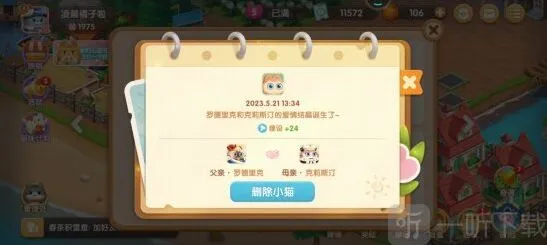 注意:品质高低省出来的小猫加成是不一样的,两个不同的小猫住在一起一晚上基本上是可以生出来一只小猫咪的,小猫咪无法成长,只能用于加成,我们也可以选择删除猫咪或者更换配对的猫咪;