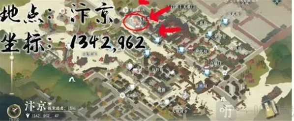 3:提交了之后我们再次来到汴京999.965的位置,我们在这里会看到npc尤仁喜;