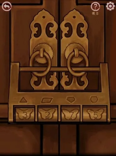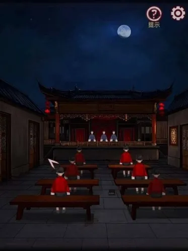 8、点击后排的凳子得到线索,根据戏台两边的灯笼调整观众,得到一张照片,根据照片调整戏台上的乐器,牌匾掉下来,从上方得到线索,去戏台左侧根据线索调整后门上的按钮,打开后门。
