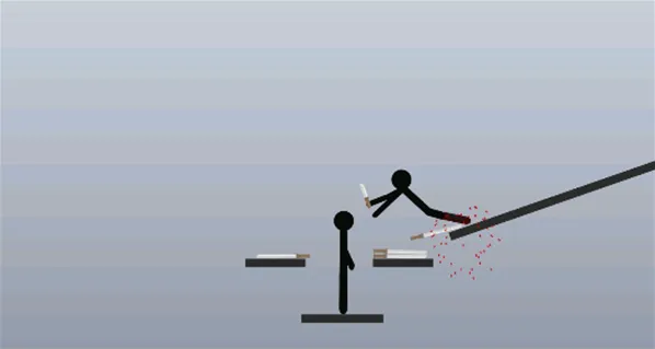 4、玩家通过操控火柴人,并携带多种飞刀,经过精准的抛物线定位后,准确无误的打到敌人身上。