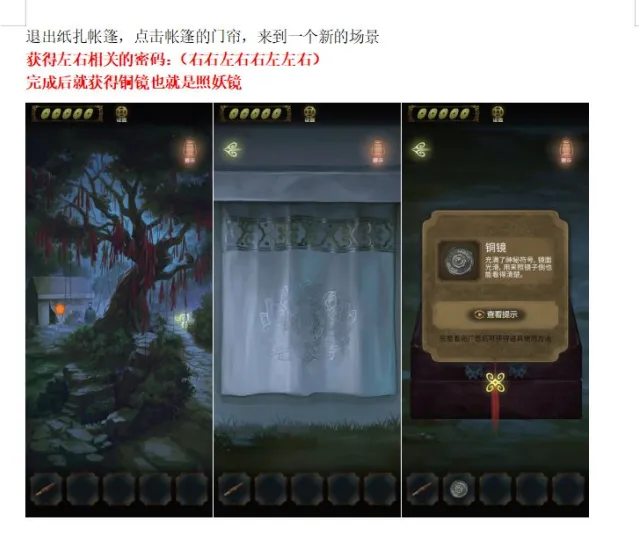 进入帐篷后在桌子上拿到火折子还可以进入罗盘画面和拿到一张纸(图中星号的地方)