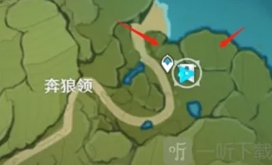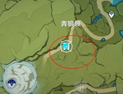 前往奔狼领,下图所示位置,到达之后在附近就能发现小灯草了。