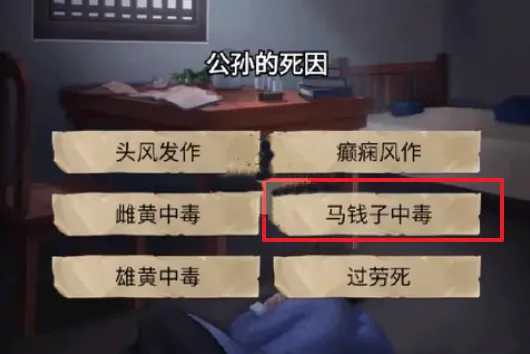 5、第一个问题公孙的死亡时间选择1~2点,第二个问题公孙的死因,马钱子中毒。