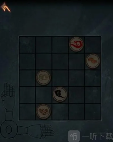 4.来到卧室,用笔洗在脸盆里装满水,放在月光下。解开枕头密码 ,获得黑色人偶。回到外面,将黑色人偶绿色人偶,拨浪鼓放在戏台上。完成小游戏获得龟甲片来到木工房,根据戏台小人调整右侧桌子上的盒子 ,获得倒流香。