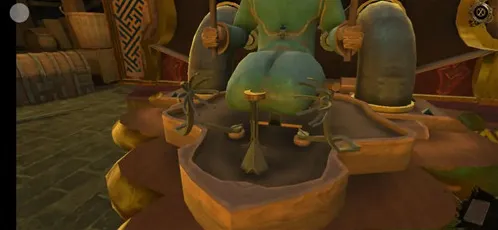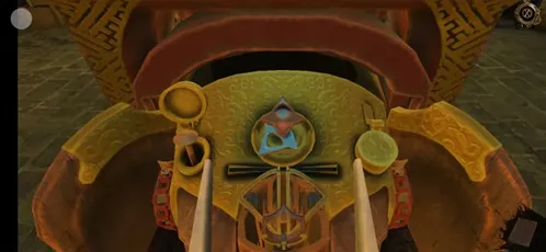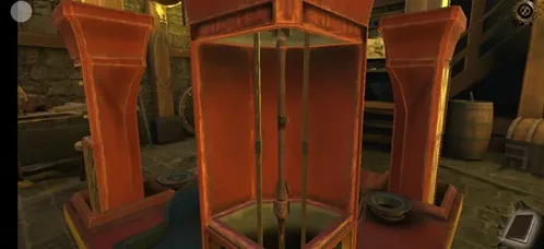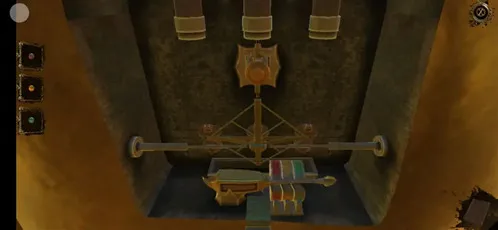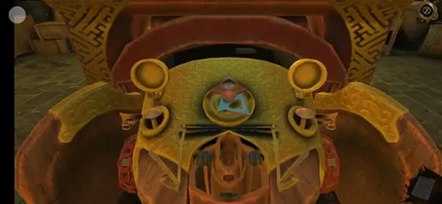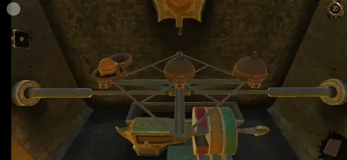 机关开启,点击右侧柱子机关上的红色宝石,得到半截笛子,再拖拽机关里的滑块,得到圆球中的迷你钥匙