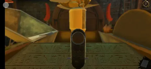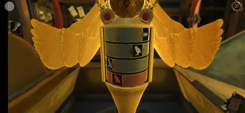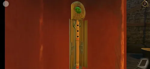 然后将钥匙插入左侧柱子中的锁孔,再点击机关上的红色宝石,得到半截笛子和泪滴宝石