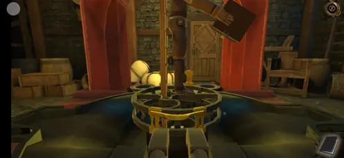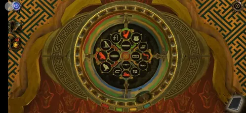 将射手座圆片放入左侧的柱子中,对应圆片上的孔,旋转旁边的齿轮