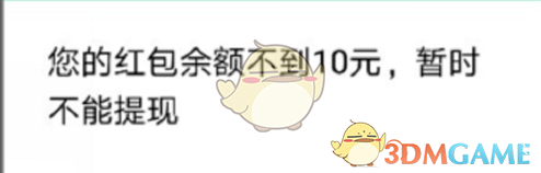 7.点过之后,弹出了一个小白框,里面有一行黑字:也就是说10元以上才可以提现。