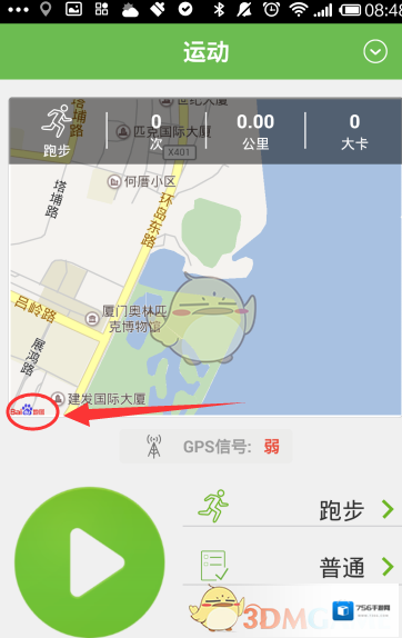 5.回到咕咚运动主界面,我们可以看到咕咚运动的默认地图已经是我们设置的百度地图了。