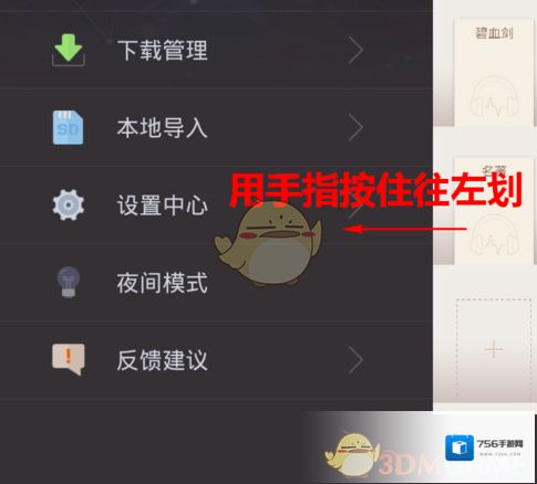 7.然后用手指按住主界面(即白色部分)往左拖过来。