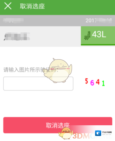 6.然后需要输入验证码信息,如下图所示,输入后点击“取消选座”。