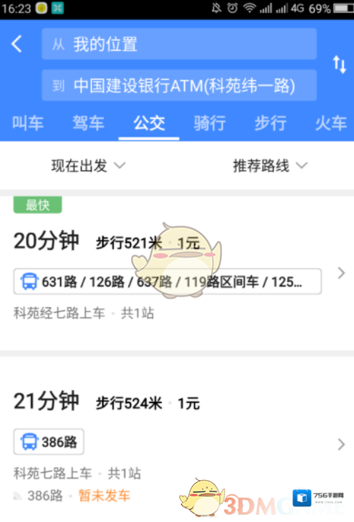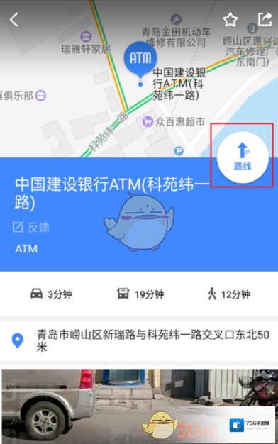 6.点击路线后给出路线如下图,默认以我的位置为初始位置。