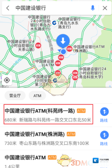 3.出现附近的银行,可以点击搜索框输入详细的某个银行