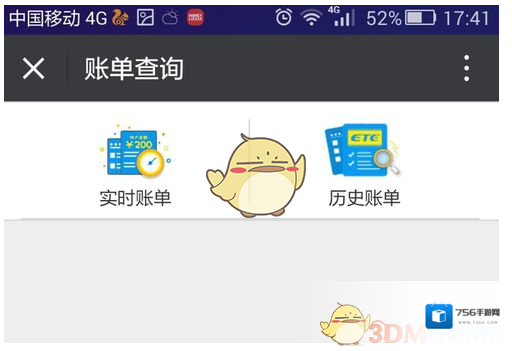 6、然后再回到刚才的我的账户页面,点击你的账户后就能进入到账单查询页面了,进入查询页面后可以看到有实时账单和历史账单两个选项,然后点击历史账单进入。