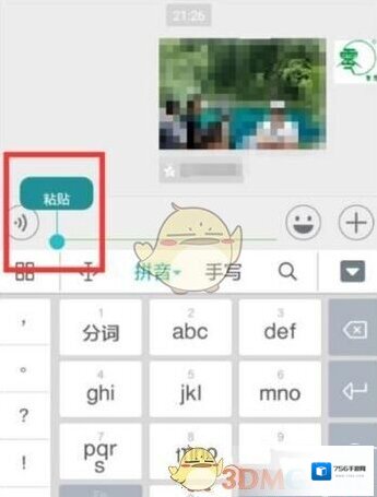 6.在好友的对话框里,点击粘贴,然后发送就可以了。