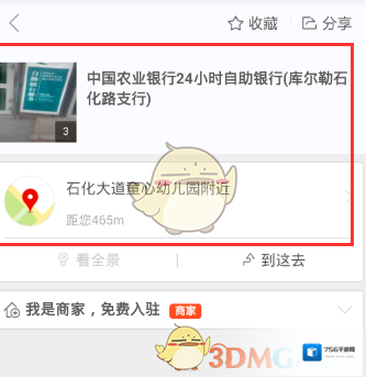 6.我们选择一两个点击之后,点击之后看到下面有个详情选项,看到之后点击打开,打开之后,打开之后可以看到银行的大概图像和地理位置。