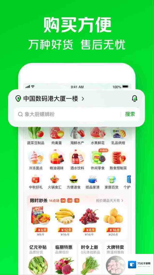 小象超市,原名美团买菜,是一款线上超市,覆盖的商品种类超级齐全,乳品面包、海鲜水产以及纸巾用品、蔬菜肉类等等,最快30分钟送达,根据当前定位自动匹配附近的门店,专业的骑手为你配送,还有贴心的客服为你解决问题,所有的商品都经过了严格的把控,放心购买,每天还有限时秒杀活动哦。