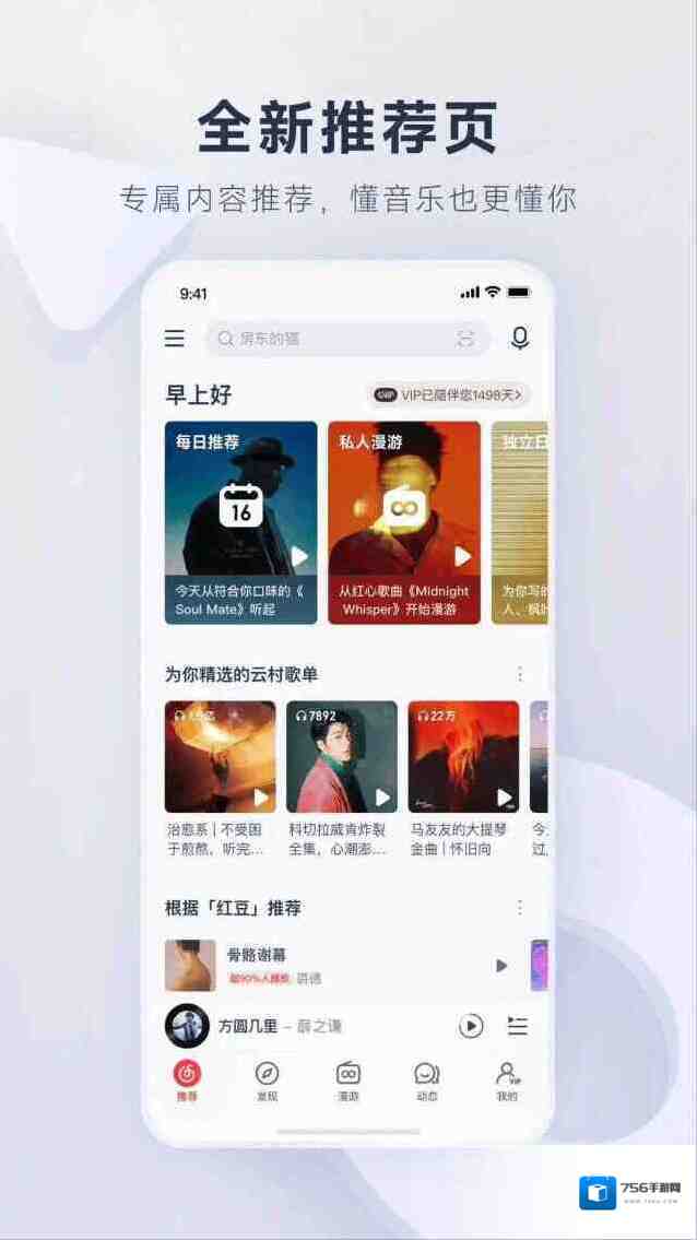 1、进入到网易云音乐App首页,点击页面上方每日推荐。 2、进入到每日推荐界面,点击页面右上角三个点。 3、进入菜单,点击音乐密友功能。 4、进入音乐密友界面,点击音乐密友头像,可查看口味相似度;点击头像下面的关注,可关注密友。 本文内容来源于互联网...2025-07-26