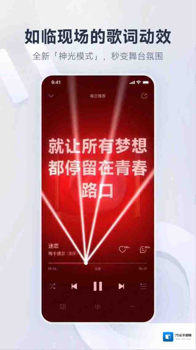 「新增歌词动效播放器」这次聚光灯下的主角是歌词!全新神光模式,前往播放器样式中可选择体验