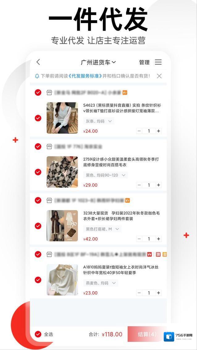 一件代发:可直接通过17网下单,下单后,由专业的代发团队拿货、质检、发货;使用17网一件代发服务,退货有保障,并且让卖家彻底从往返批发市场拿货发货的繁琐流程中解放出来,专心经营店铺。
