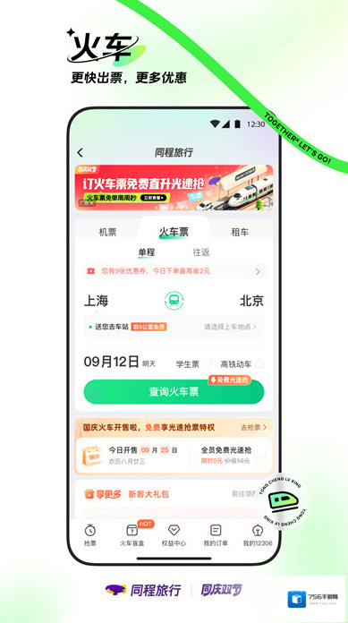覆盖国内所有铁路线路,支持余票查询,在线退票、改签,快速出票不用等!